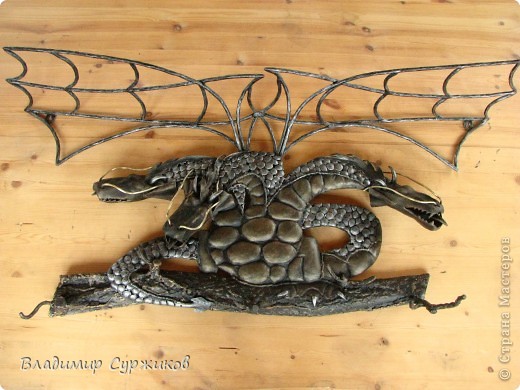 Тип работы Событие Техника Материал Поделка, изделие Ковка, чеканка: Кованая вешалка "Змей Горыныч" Металл